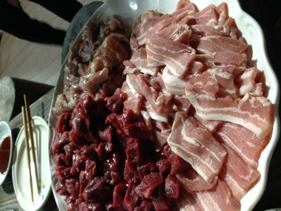 ホステルに戻ると、もう炭火もちょうどよく準備が整い、いつでも焼いて食べてください状態。