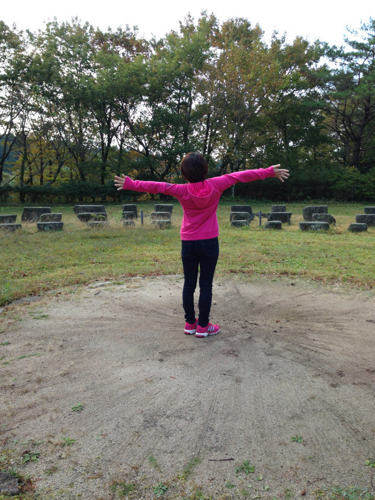 サークルストーンの中央に立つHちゃん。これで彼氏GETできると良いね。